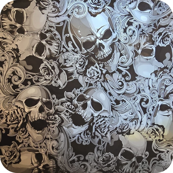 Ce motif de crâne allie créativité et apparence saisissante. Facile à appliquer et adaptable à différents types de projets.